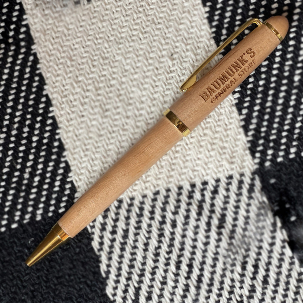 BAUMUNK'S GENERAL STORE ETCHED WOODEN PEN W/ SHUNK PA