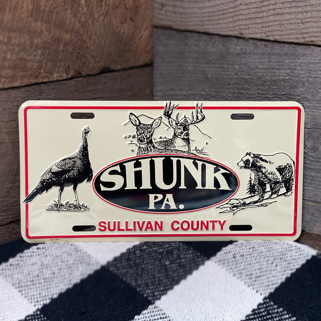 METAL PLATE LICENSE PLATE, SHUNK PA SULLIVAN COUNTY